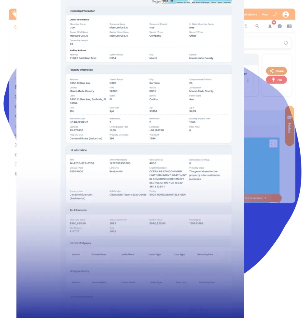 The platform is incredibly user-friendly, and the layout makes sense. The property report integration is a favorite; being able to view ownership info, value, and mortgage balance right in the app saves a ton of time for my team.